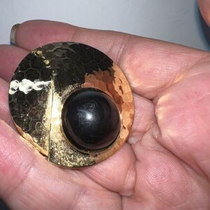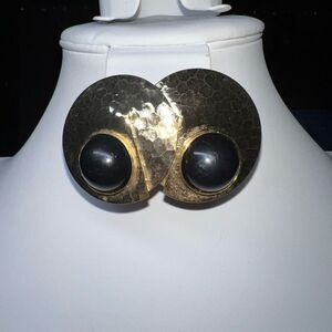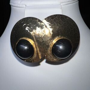 Vintage Gold Tone and Black Stone Modernist Swirl Earrings