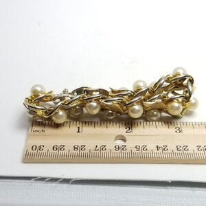Vintage Gold Tone and Faux Pearl Panel Bracelet, Classic Design, Retro Estate