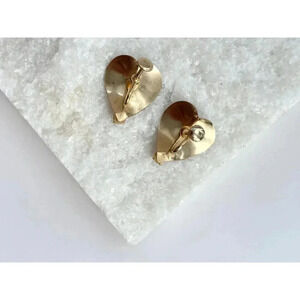 Vintage Gold Toned Heart Shaped Textured Cultured Pearl Screw MCM Stud Earrings