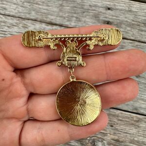Vintage Gold Trifari Bar Pin Dangling Medallion Brooch Trifari Victorian Brooch