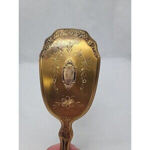 This vintage gold vanity hairbrush with a floral design is a charming and elegant addition to any vanity or dressing table. The 10" size makes it perfect for gently detangling and styling hair while adding a touch of old-world charm to your beauty routine. Its retro design and luxurious gold finish make it a unique and timeless piece for collectors or those who appreciate vintage aesthetics. There is patina on the top corner. See photos.