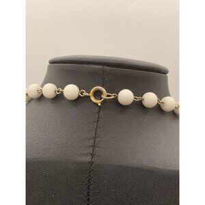 This vintage necklace features elegant white beads and gold-tone chains, creating a sophisticated layered look. It's a timeless accessory for enhancing any ensemble, adding a touch of class and elegance to both formal and casual attire.