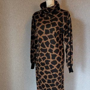 Vintage Gold Worm France 100% Wool Leopard Sweater Dress Turtle Neck Brown