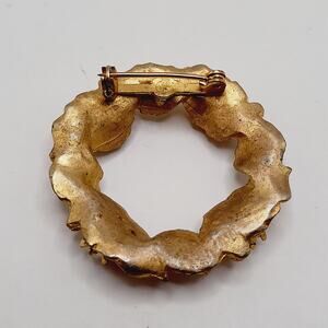 Vintage Gold Wreath Brooch w/ Rhinestones & Faux Pearls, 1.5", Missing 2 Stones