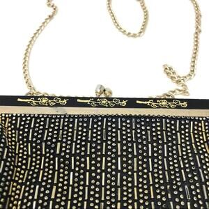 Vintage Gold and Black Beaded Evening Shoulder Handbag Metal Frame