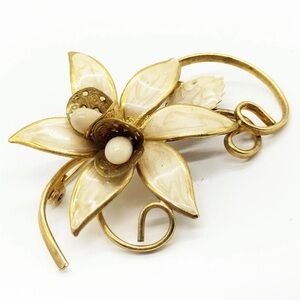 Vintage Gold and Cream Floral Brooch Pin