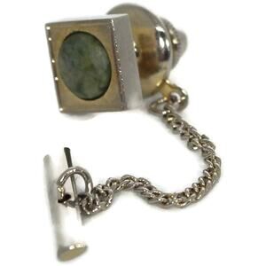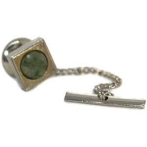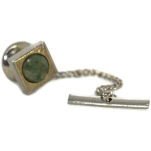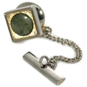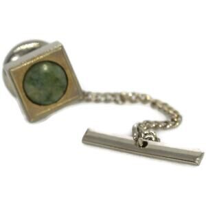 Vintage Gold and Green Stone Tie Tack with Chain, Vintage Men's Accessories