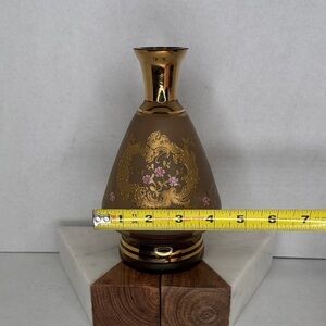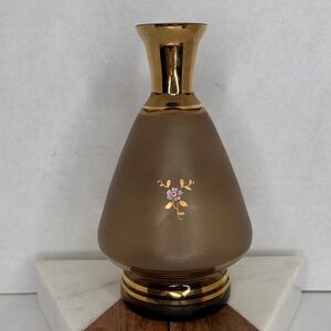 This Vintage Gold and Pink Hand Painted Floral Vase is a charming piece of decorative collectible. The medium-sized glass vase features a beautifully crafted floral pattern in gold, with hand-painted details giving it a unique and elegant finish. Perfect for displaying flowers or as a standalone piece, this vase is sure to add a touch of vintage sophistication to any space.