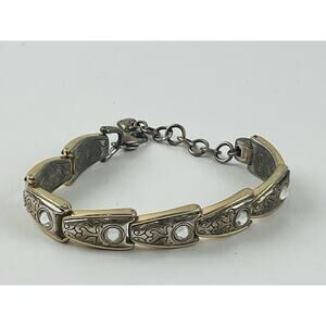 Vintage Gold and Silver Plated Link Bracelet Crystals Stamped Brighton Western