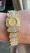 This stunning women's watch features a luxurious gold and silver design, perfect for adding a touch of elegance to any outfit. The intricate detailing and sparkling accents make it a standout accessory.