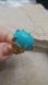 Elegant vintage gold tone ring featuring a vibrant lucite turquoise and Brutalist design setting. Perfect for adding a pop of color to any outfit.
