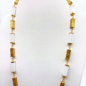 Vintage Gold and White Geometric Necklace with Intricate Rectangular Links