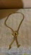 GUC- vintage mid century modern necklace-It’s a thick flat chain with flat fold over hook closure. The design is like a double bolo tie with a gold embellishment- not sure what to call it (Art Deco, southwestern, or architectural maybe). Anyway, it’s so fashionable, looks high-end, and quite a statement! It’s possible to describe the chain as Cuban, cable, or double style chain. I’m not an expert- but it looks similar to these descriptions. Could be brass, plated, or just gold tone. It doesn’t stick to magnet.