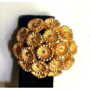 Gorgeous Vintage Brushed Gold tone Dome Honeycomb design Clip back Earrings