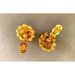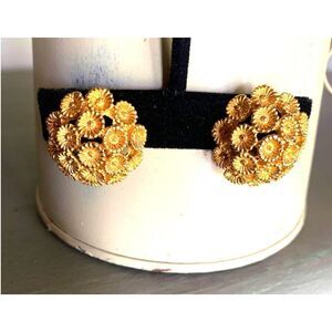 Vintage Gold tone Dome Honeycomb design Clip back Earrings, Unmarked