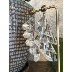 1-Vintage Gold/Bronze Tone Dangle Clear Beaded Drop Earrings Art Deco’ish