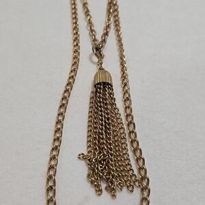 Long 3 strand Emmons gold tone chain with tassel pendant