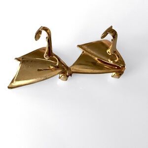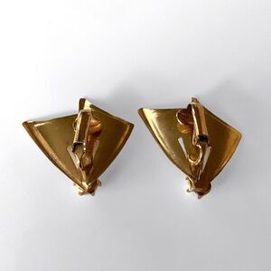 Vintage Gold Tone Fan Shape Faux Pearl Clip Earrings. About the size of a quarter. In great condition!