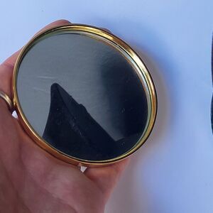 Materials: goldtone metal alloy, glass mirror Length: 3" sturdy quality construction Excellent vintage condition