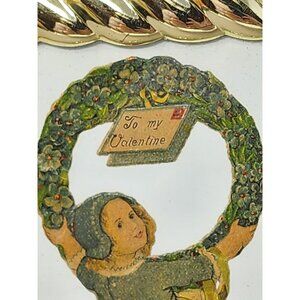 This vintage gold-plated frame features a charming German valentine illustration with intricate details, showcasing a nostalgic Valentine's Day theme.