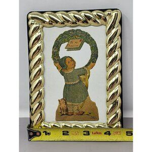 Minor wear on the velvet backing. Front frame and illustration are in excellent condition. In good preowned condition this is a vintage item so there will be some wear and sold as is. Would make a great addition to any collection. Measuremetns in pics. Comes as pictured.