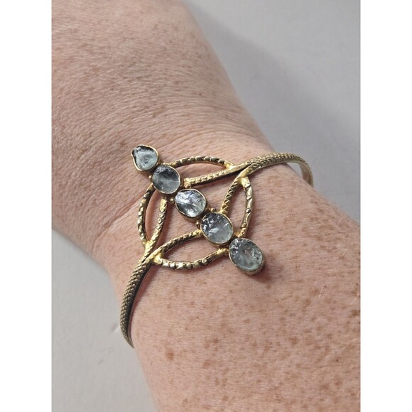 Vintage Gold-Tone 5 Stone Cuff Bracelet Textured Raw Uncut Gemstones Bezel Set