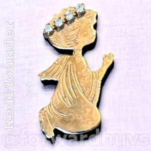 Vintage Gold Tone Angel Praying with Rhinestone Halo Brooch