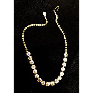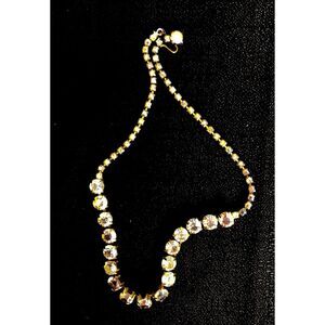 Vintage Gold-Tone, Aurora Borealis Crystal Rhinestone Necklace, 1950s, 15 inch