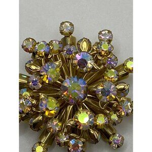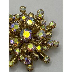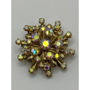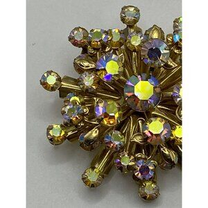 Vintage Gold-Tone Aurora Borealis Rhinestone Starburst Brooch Pin