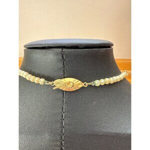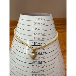 Vintage Gold-Tone Beaded Necklace With Heart Pendant & Textured Clasp