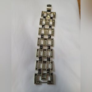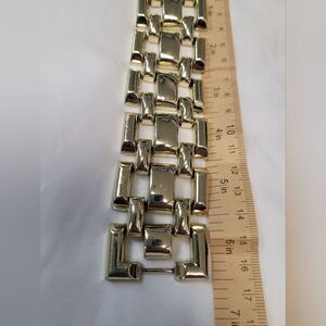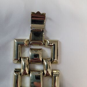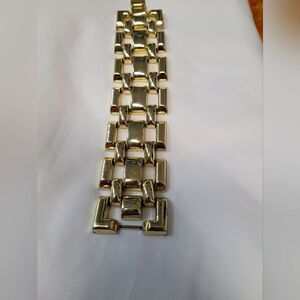 This stunning vintage bracelet is a true eye-catcher with its unique block link design and gleaming gold-tone finish. It's a perfect accessory to add a touch of vintage elegance to any outfit.