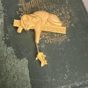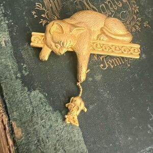 Vintage Gold Tone Cat and Mouse dangle JJ women’s Brooch/pin Jewelry. EUC.