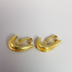 Vintage Gold Tone Clip On Half Hoop Earrings, Ribbed Design, Retro 80s 90s Style