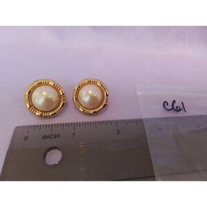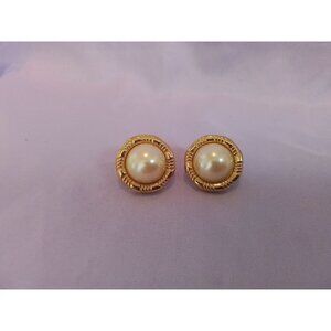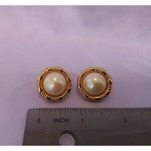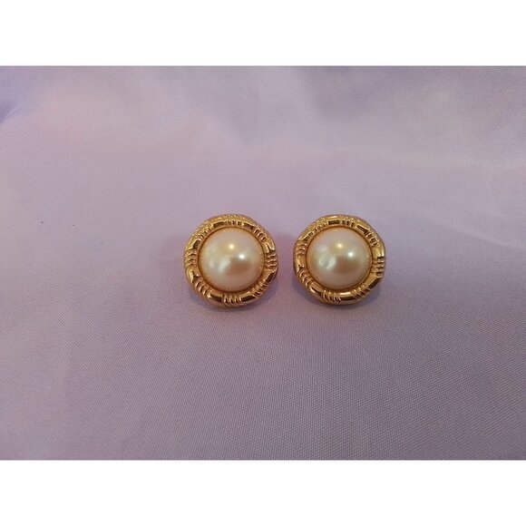 Elegant vintage clip-on earrings featuring a gold-tone setting with faux pearls. Ideal for adding a touch of sophistication to your attire.