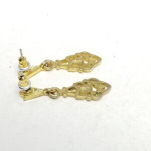 Vintage Gold Tone Dangle Drop Stud Filigree Earrings, Tiny Rhinestones, Estate