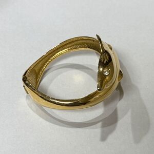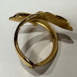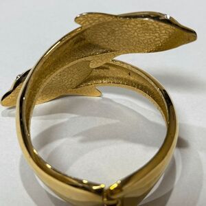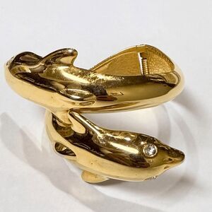 Vintage Gold-Tone Dolphin Bypass Bracelet – Rhinestone Eyes Hinged Bangle Cuff