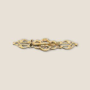 Vintage Gold-Tone Filigree Bar Pin Brooch With Faux Pearl Accents