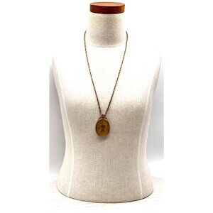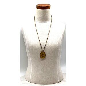 This vintage locket necklace features a gold-tone floral design, offering an elegant and timeless addition to any jewelry collection.