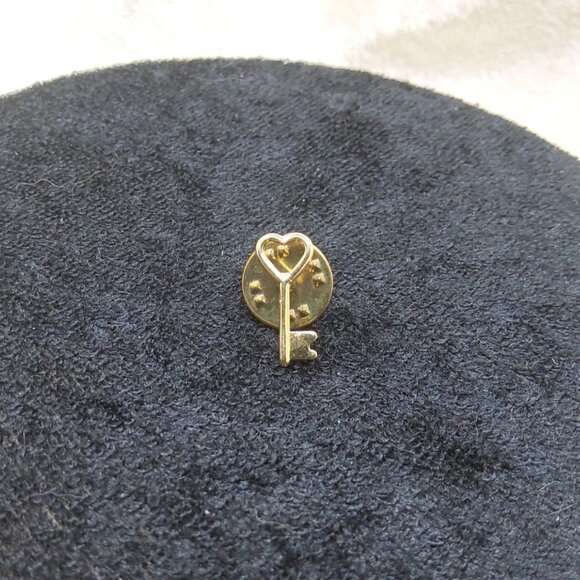 Vintage Gold-Tone Heart Key Lapel, Yat, Clothing Pin
