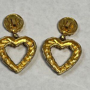 Vintage Gold-Tone Heart-Shaped Drop Earrings