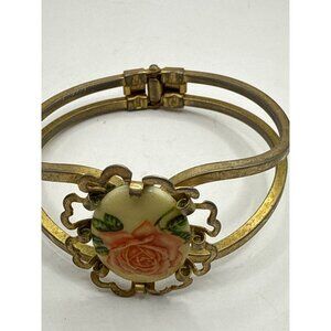 Vintage Gold-Tone Hinged Bracelet With Floral Cameo Centerpiece