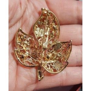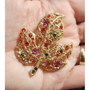 Vintage GoldTone LEAF Multicolor Stones Very Detailed Pendant Brooch. Not marked, I am unsure of materials. Comes with a gift box for gift giving. Great used condition. Smoke-free home. Check out my other items. I will combine shipping