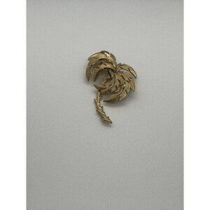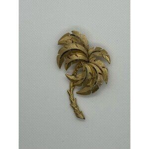 Vintage Gold-Tone Palm Tree Brooch Pin Textured Details Retro Costume Jewelry