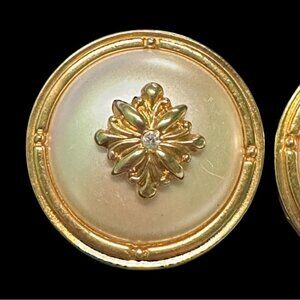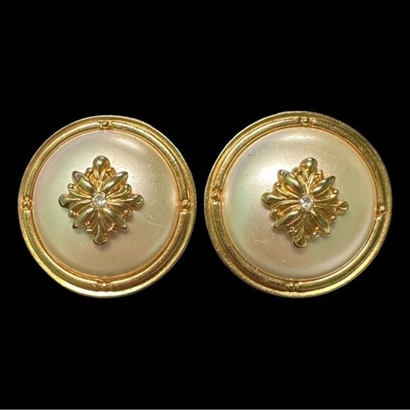 Vintage Gold-Tone Pearl Clip-On Earrings With Rhinestone Accent