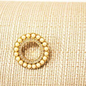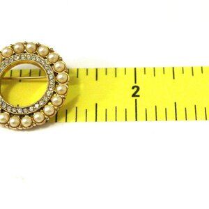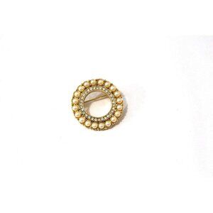 Vintage Gold-Tone Pearl & Rhinestone Circle Brooch Pin