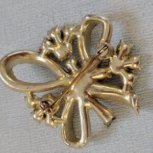 Vintage Gold-Tone Rhinestone Bow Brooch With Pink Opal Accents