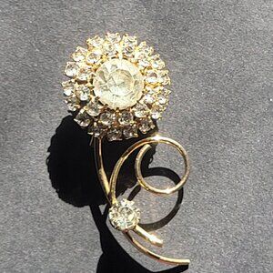 Vintage Gold-Tone Rhinestone Floral Brooch Pin Jewelry Accessory