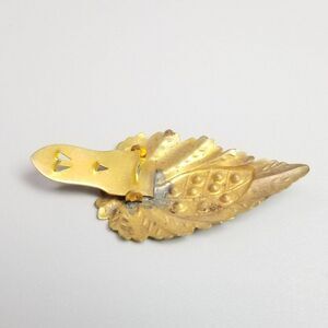 Vintage Gold Tone Rhinestone Leaf Dress Clip Shoe Clip Scarf Clip, Retro Brooch