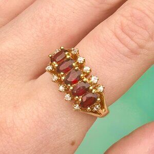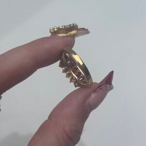 Vintage Gold-Tone Ring with Deep Red and Clear Stones 6.5 US