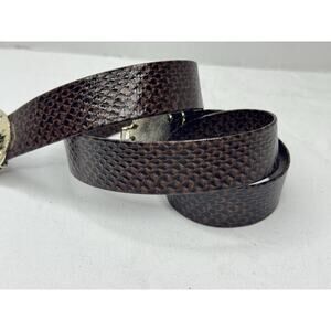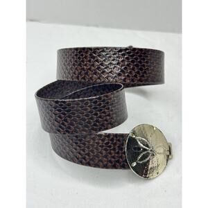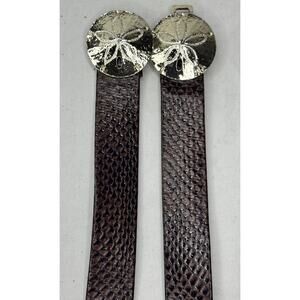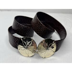 Vintage Gold-Tone Sand Dollar BUCKLE Adjustable Brown Snakeskin Belt ONE SIZE